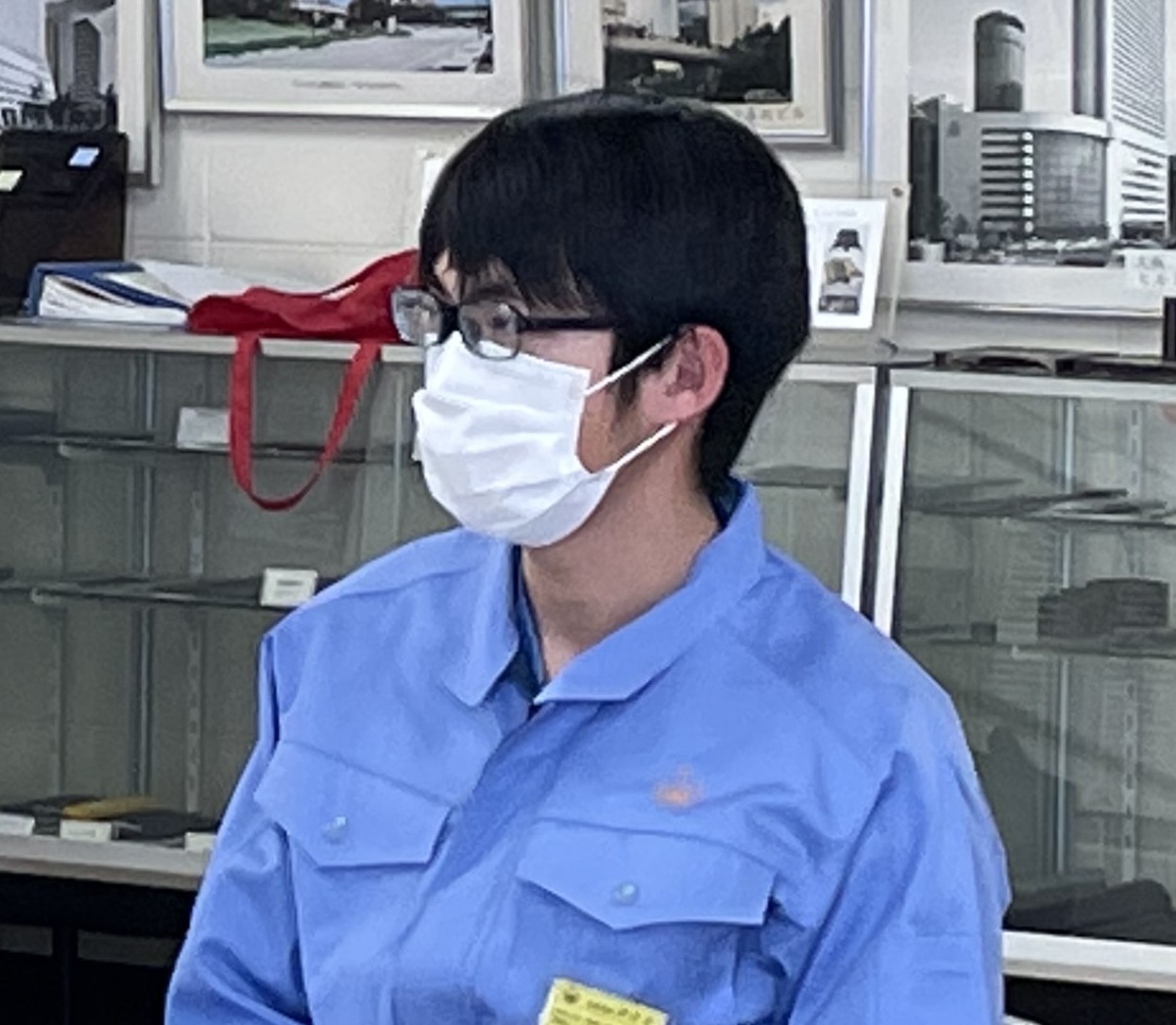 Q1:会社や工場のイメージは?工場の大きさや作っているモノが違っていたり一つ一つが工夫されていてすごいと思いました。Q2:入社後のギャップがあれば教えてください。入る前は不安でしたが、先輩たちがいろいろ話しかけてくれ、いろいろな話を聞くことができて、とても楽しいです。Q3:後輩学生に対してのアドバイスなどわからないことがあったら、どんどん質問したほうがいいです。ちゃんと教えてくれるし、自分のためにもなります。私も、そんなふうに頼られたり、この人と仕事をしたいと思ってもらえるような人になりたいです。 |